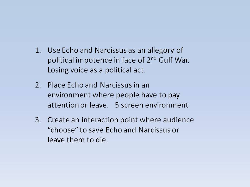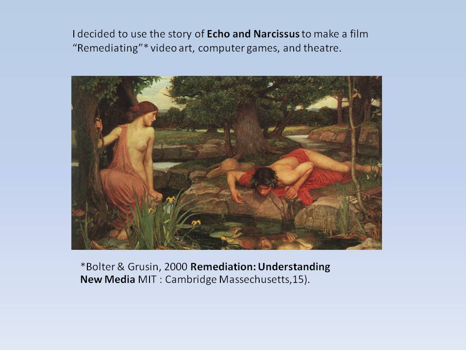 This was the background to making Echo. The illustration is Waterhouse – Echo and Narcissus, 1903.